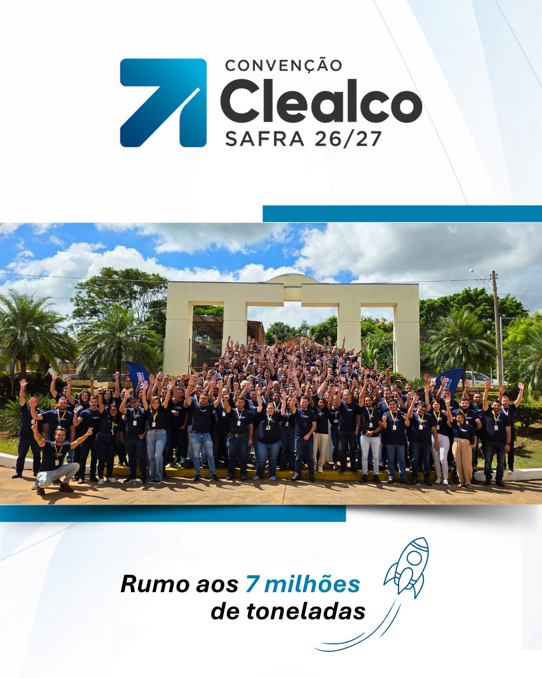 A trilha da Convenção Clealco Safra 26/27 foi estruturada a partir de uma análise abrangente dos desafios do setor, incluindo projeções do mercado de açúcar e etanol, além do cenário financeiro, de suprimentos e de originação de matéria-prima; também foram apresentados projetos voltados à excelência operacional, melhores práticas de compliance, plano diretor de desenvolvimento e aprimoramento profissional, bem como o planejamento operacional da Companhia para alcançar os objetivos estabelecidos para o período. Em moagem, a Clealco prevê processar o volume de 7 milhões de toneladas de cana.